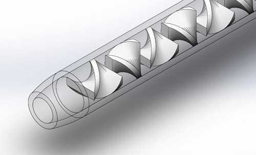 靜態(tài)混合管使流體進(jìn)一步分割混合,最終混合形成所需要的乳狀液...