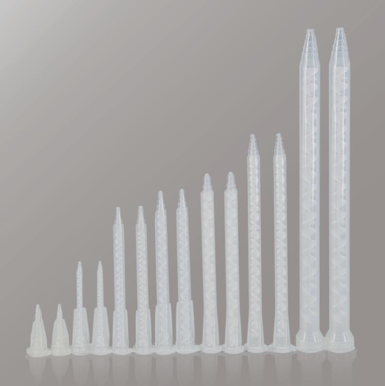 4、靜態(tài)攪拌器未端有多種型式設計,例如:依所的流量截取所需的出膠口徑,換頭,可轉接各種口徑針頭以配合小膠量之要求或軟管。用于涂抹或滴注各種雙組分膠粘劑或涂料,操作簡單,方便易用,能徹底解決雙組分膠粘產品混和不均勻的難題。
