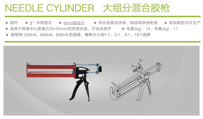 ★晶鼎膠槍有200m、400ml、600ml的選擇,每種大小均1:1、2:1、4:1、10:1選擇